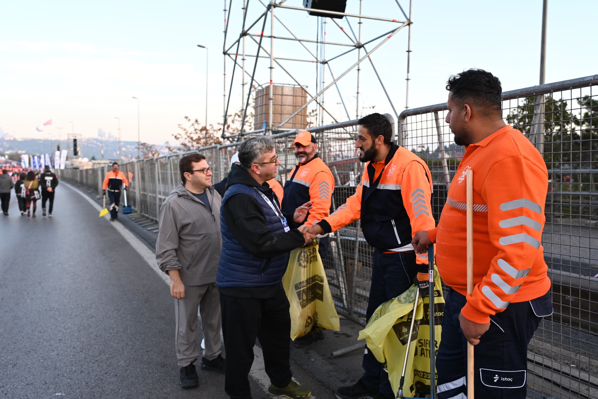 Maraton boyunca özveriyle çalışan ekiplerimizle bir araya gelen Sn. Uğur, İstanbul’un temiz kalması için emek veren tüm mesai arkadaşlarımıza teşekkürlerini iletti.