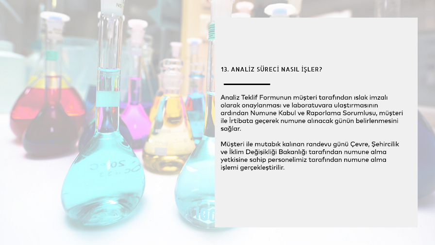 Atık analizleri, Çevre ve Şehircilik Bakanlığı’nın yetki vermiş olduğu laboratuvarlarda yaptırılmalıdır. Atıktan alınacak numunenin, bakanlıktan numune alma sertifikası almış laboratuvar personeli tarafından alınması gerekmektedir. Aksi halde analiz bakanlık ile olan yazışmalarda kullanılamamaktadır. Atık analizleri İSTAÇ A.Ş. nin 2007 yılında faaliyete geçen Çevre Laboratuvarında yapılabilmektedir. Deneylerinde uluslararası geçerli yöntemleri uygulayarak 2008 yılında Laboratuvar Kalite Yönetim Sistemini TS EN ISO/IEC 17025 standardına göre revize ederek uygulamaya koymuş ve 04.03.2010 tarihi itibari ile TÜRKAK tarafından akredite edilmiştir. Bununla birlikte İSTAÇ Çevre Laboratuvarı, Çevre ve Şehircilik Bakanlığından da yetki almıştır. Laboratuvar analizi başvuru formunu https://istac.istanbul/faaliyet-alanlarimiz/atik-yonetimi/endustriyel-atik-yonetimi adresinden temin edebilirsiniz.